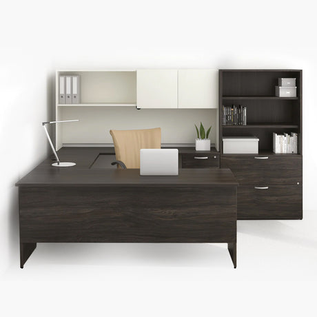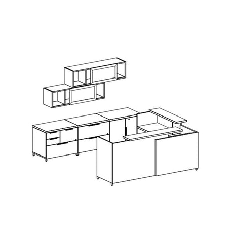 Bureau en U avec étagère et bibliothèque/classeur, Concept 300