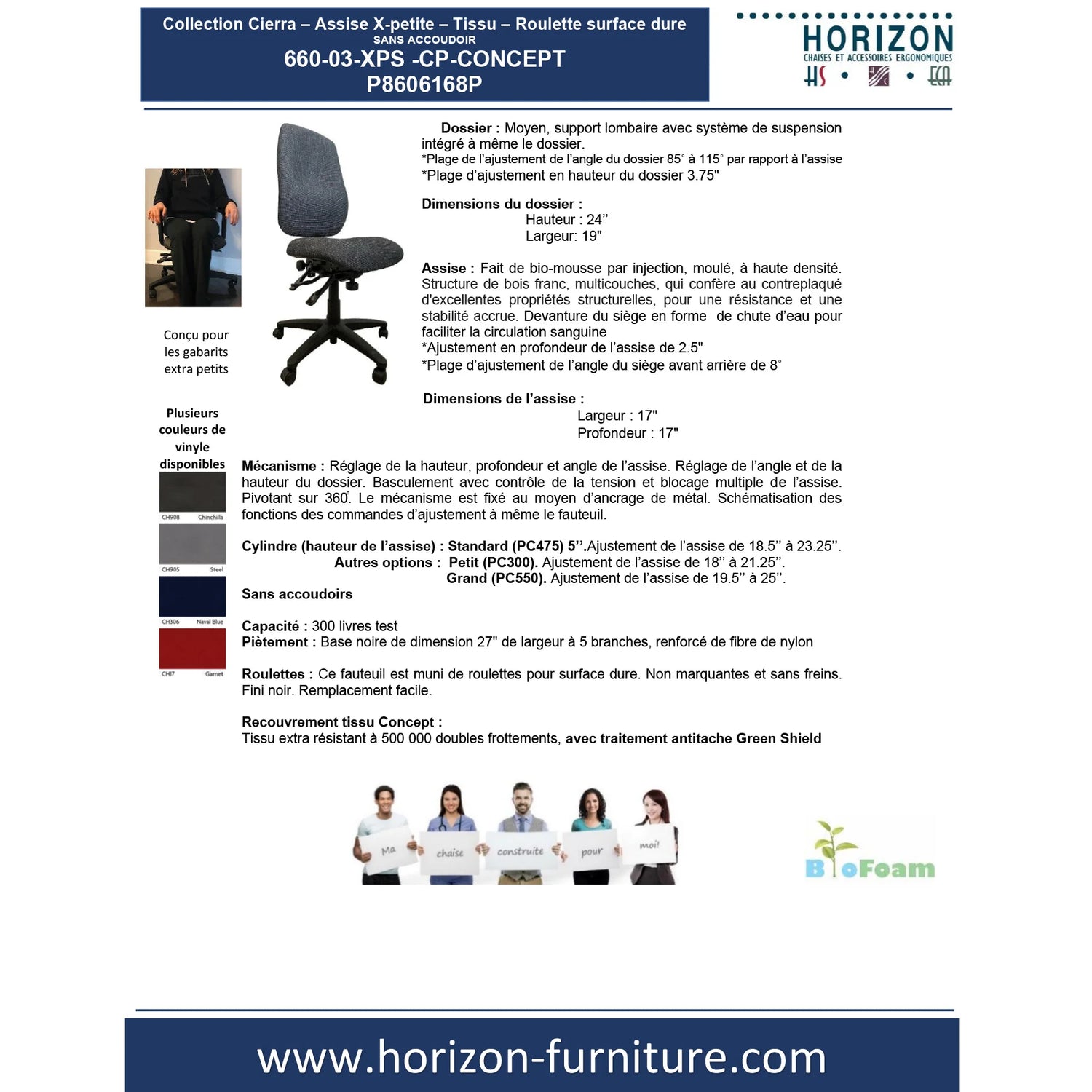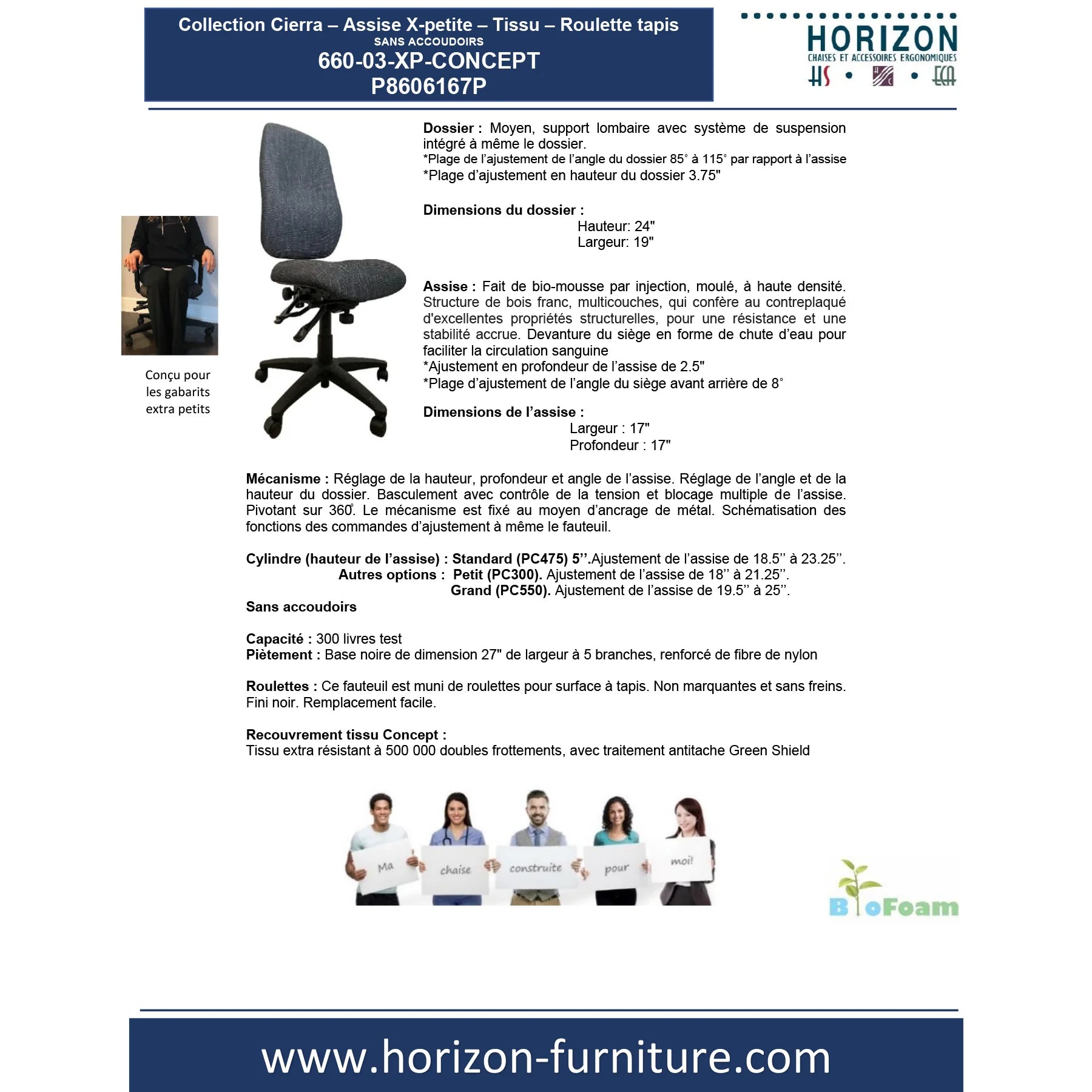 La chaise Cierra – assise X-petite, sans accoudoirs, est spécialement conçue pour les utilisateurs de très petite stature et pour les environnements gouvernementaux, institutionnels et administratifs où une ergonomie précise et proportionnée est essentielle. Cette configuration assure un ajustement optimal tout en conservant la robustesse, la durabilité et la performance reconnues de la collection Cierra.