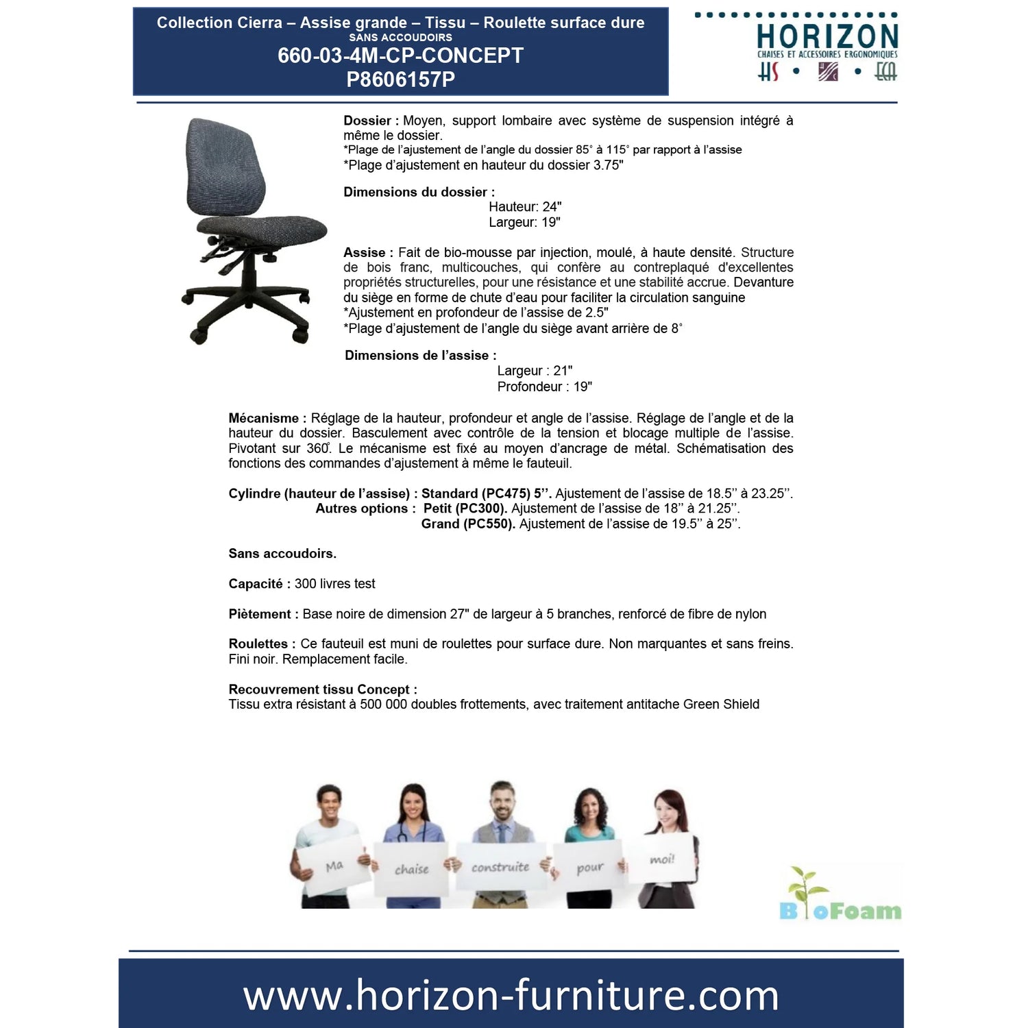 La chaise Cierra en tissu Concept, sans accoudoirs, est conçue pour offrir un confort durable et une ergonomie optimale dans les environnements institutionnels. Recommandée pour les milieux gouvernementaux, éducatifs et administratifs, elle combine simplicité, robustesse et performance. Son assise grande, son mécanisme complet et son tissu hautement résistant en font une solution fiable pour un usage quotidien intensif.